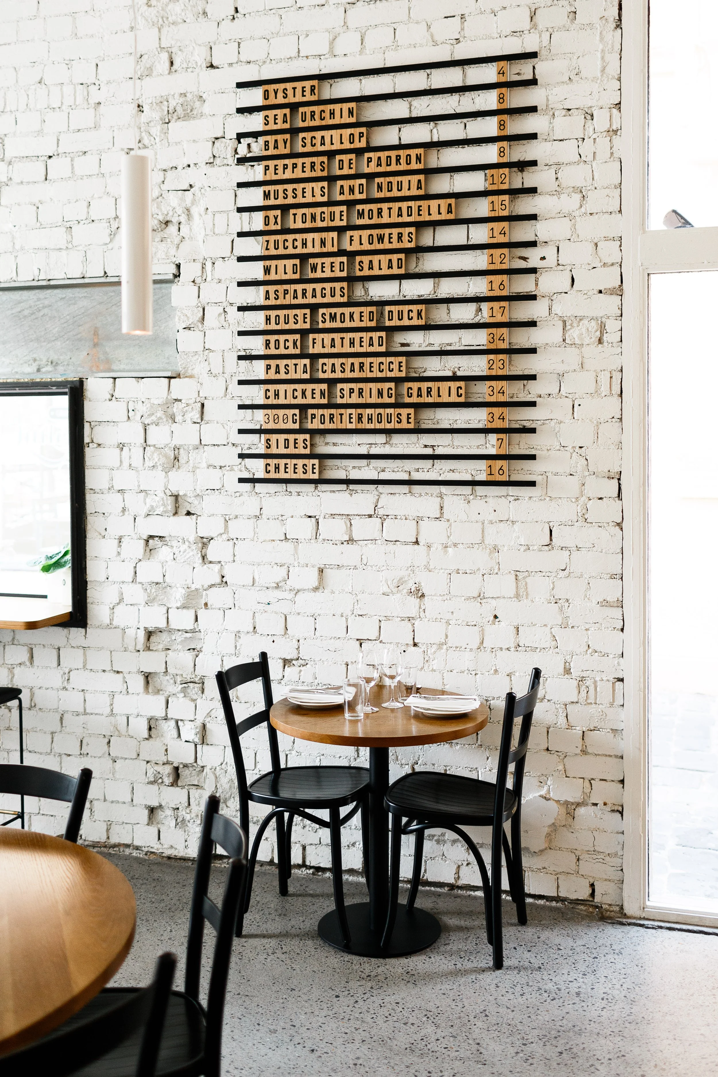 Surrounded by white-washed brick walls and filled with intimate round tables and leather benches, the rustic wine bar offers a wide selection of grape tipple sourced both locally and from around the world, displayed on what can only be described as a library of wine covering the entire breadth of a wall, floor to ceiling. And even though the wine is the focus here, you can be sure that in a place run by such an esteemed chef the food will be just as delicious. The menu is constantly changing, focusing on seasonal produce and displayed on chic wooden letter boards on the wall.
